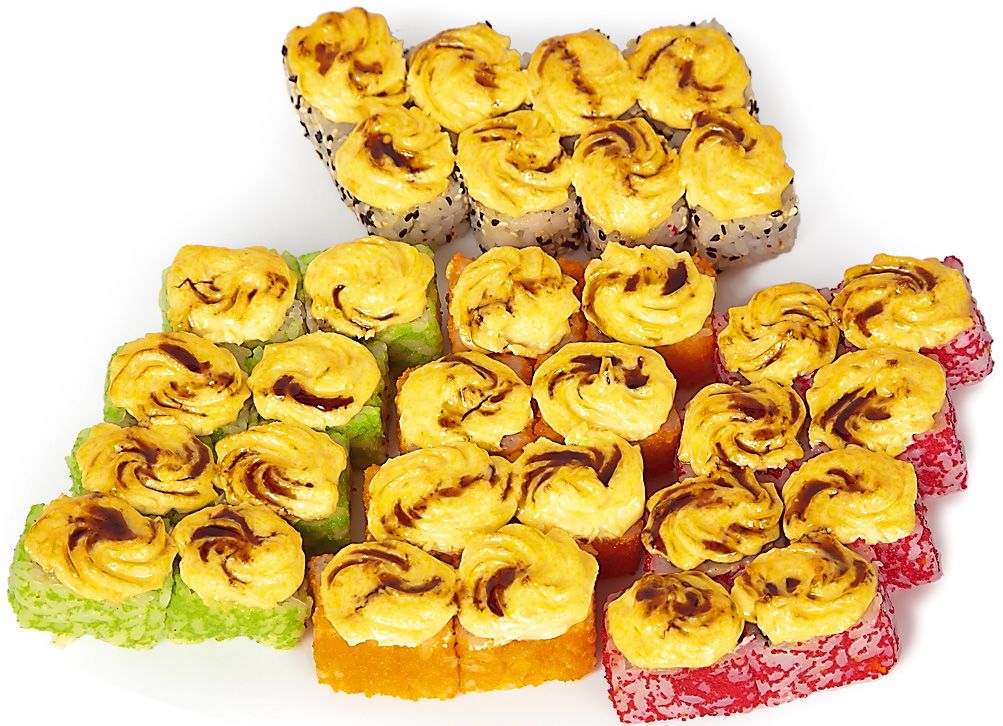 Состав: ролл с лососем, крабом, окунем, мидиями.