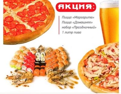 Акция 1 3 427 ₽ В корзину В корзину Пицца «Маргарита»Пицца «Домашняя»набор «Праздничный»1 литр пива Пицца «Маргарита»Пицца «Домашняя»набор «Праздничный»1 литр пива Поделиться